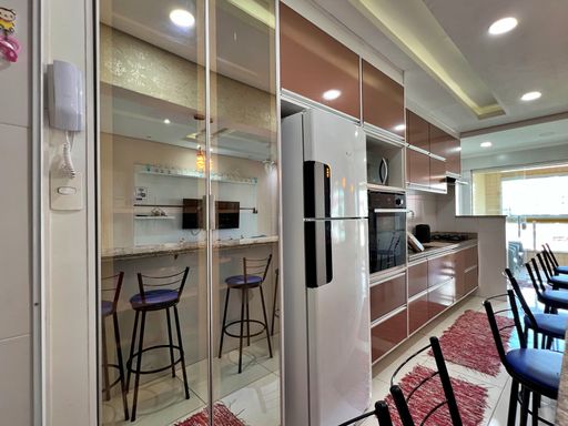 São 87m², 02 dormitórios sendo 01 suíte, sala enorme, cozinha americana grande e uma sacada gigante e tão ampla que funciona como vários ambientes ao mesmo tempo.